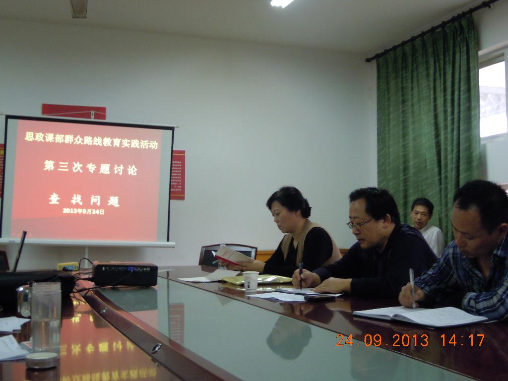 9月24日下午,思想政治理论课部全体党员“聚焦‘四风’,查找问题,加强作风建设”展开了第三次专题讨论,分管理领导张书记参加了讨论,并倾听了大家提出的意见和建议。