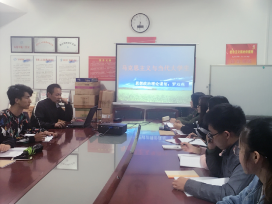 本网讯 10月13日,由思政课部主办的马克思主义经典原著学习兴趣班第一课开讲,思想政治理论课部主任罗双燕教授为全体学员做了《马克思主义与当代大学生》专题报告。