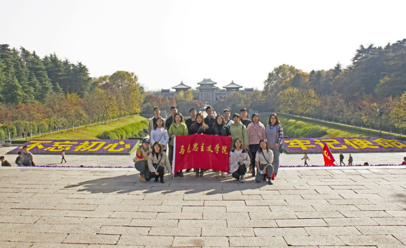 在马克思学院青年教师黄璐、陈静,辅导员侯秋月的带领下,第一站首先来到了雨花台烈士陵园,雨花台烈士陵园是新中国规模最大的纪念性陵园,也是全国爱国主义教育示范基地。兴趣班成员们在这里齐声歌唱《国际歌》,缅怀了曾经用热血和生命守卫美好山河的烈士英雄,感受了那番泥泞坎坷的漫漫前路,聆听了民族英雄奋起抗争的故事,坚定了兴趣班成员们铭记历史,砥砺前行的决心。兴趣班内党员同志们在此庄严宣誓将为共产主义事业奋斗终生。