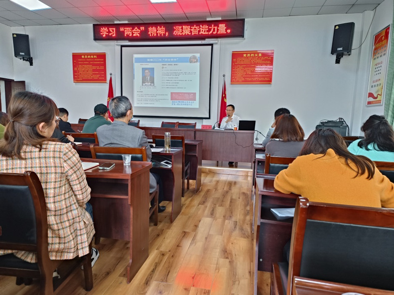 为深入学习宣传贯彻全国“两会”精神,提升基层治理水平,4月13日下午,武汉市委讲师团成员、马克思主义学院教师二支部书记刘宗劲老师到沌阳街道南湾社区作了一场题为“坐在办公室都是问题,深入基层全是办法 ——图解2023年全国‘两会’精神”的党课宣讲,宣讲活动由南湾社区党支部书记肖磊主持,南湾社区党支部和其共建单位薛峰综合有限公司党支部全体党员参加了此次活动。
