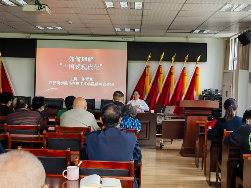 陈翠翠老师以“如何理解中国式现代化”为主题,从现代化的历史发展、中国式现代化的内涵要义两个方面入手进行了深入阐述和解读。陈翠翠老师在授课中,结合国内外形势、党和国家大事、社区党建、日常生活等方面娓娓道来,案例生动有趣,课堂氛围良好,让人回味,引人深思。这次讲课让在场听众对中国式现代化的内涵和本质以及新时代新征程中国共产党的使命任务有了深刻理解和认识。