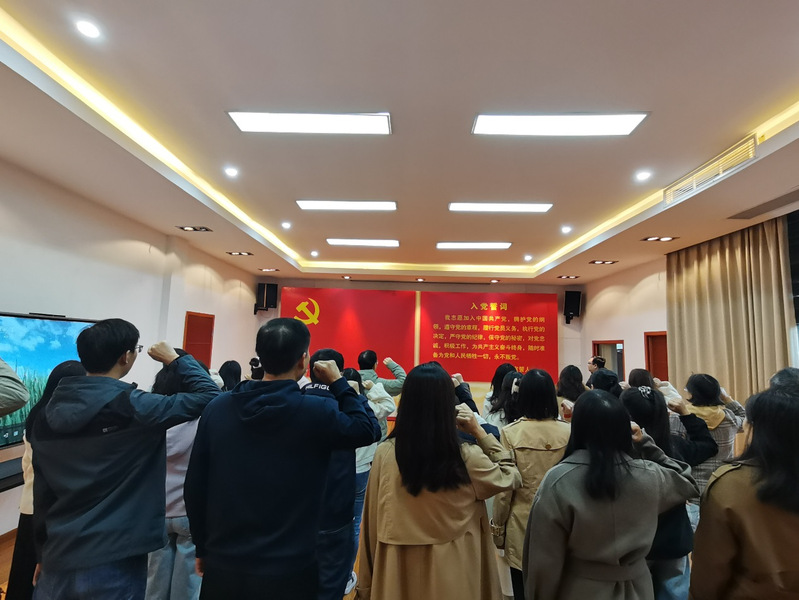 全体教师首先来到了峒山社区。在基地解说员的带领和讲解下,大家依次参观了峒山社区大厅、习近平总书记视察峒山社区陈列室、社区党员服务中心、风雨回廊等地,基地内的图片、视频、实景等再现了峒山社区的发展历程,让大家深入了解了峒山社区的发展情况。十年来,峒山社区牢记习近平总书记的殷殷嘱托,奋力推进社区全面建设,在城乡一体化、产业发展、乡村振兴及基层党建等方面取得了丰硕成果,呈现出产业兴旺、村美民富的繁荣局面。在认真学习了习近平总书记视察峒山社区时的重要讲话精神后,党员教师们重温了入党誓词,铿锵有力的誓词提醒党员教师要坚定理想信念,不忘教书育人初心,牢记立德树人使命。