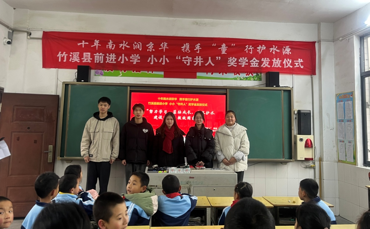 12月9日,马克思主义学院教师徐一鑫等组织策划的“十年南水润京华,携手‘童’行护水源”——小小“守井人”奖学金发放仪式在竹溪县前进小学拉开帷幕。此次活动旨在加深青少年学生对保护竹溪县水资源涵养地的深刻认识,倡导健康绿色生活,推动生态文明建设,促进人与自然和谐共生。