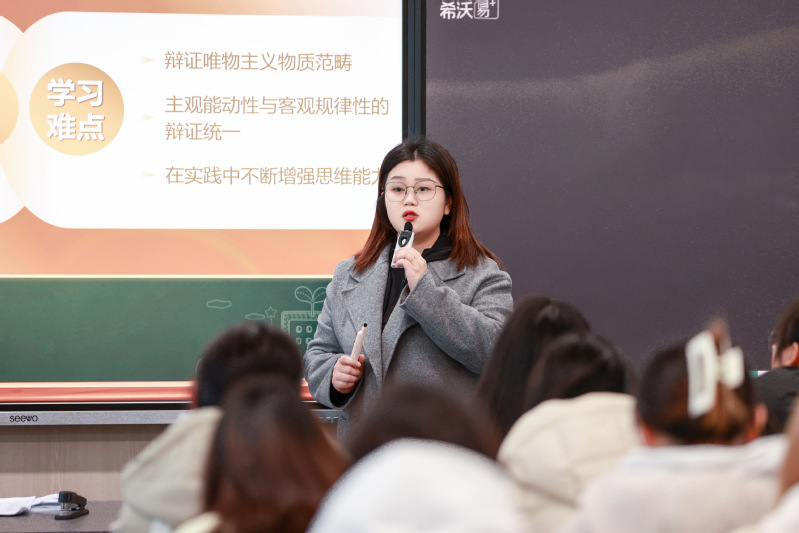 全班分成七个理论研习小组,每个小组选取一位具有代表性的历史人物,在特制白纸上为其设计“马克思主义视域人物海报”。当各组的彩笔在白纸上勾勒出各位先贤的轮廓时,金敏穿行于课桌间轻声指导:“大家要着重呈现历史人物在唯物史观中的坐标,更要思考他们与马克思主义传播的联结。”随着课堂进入展示环节,各组汇报人走上讲台,结合书本知识,为栩栩如生的人物画像注入深刻的理论注解。