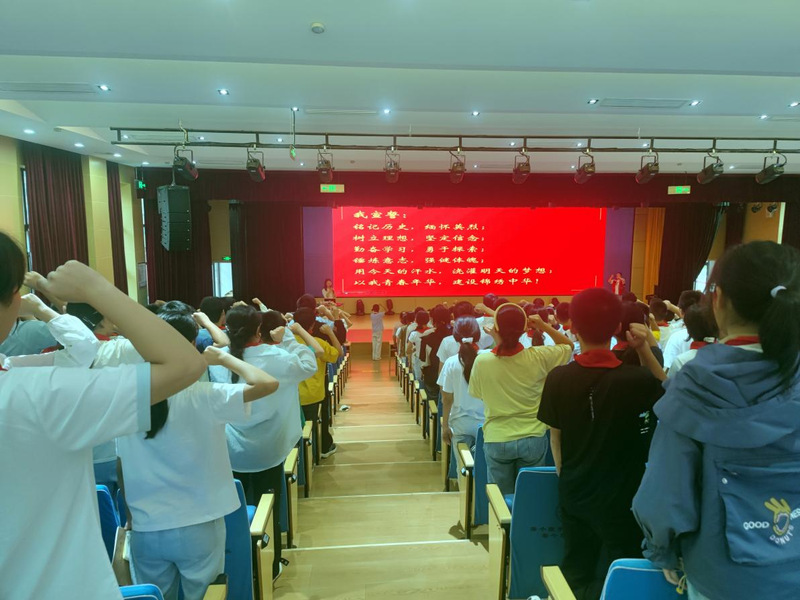 课程最后,在领誓同学的带领下,全体学生起立举拳,庄严宣誓:“铭记历史,缅怀英烈;树立理想,坚定信念;勤奋学习,勇于探索;锤炼意志,强健体魄;用今天的汗水,浇灌明天的梦想;以我青春年华,建设锦绣中华!”铮铮誓言回荡全场,将整堂课的氛围推向高潮。